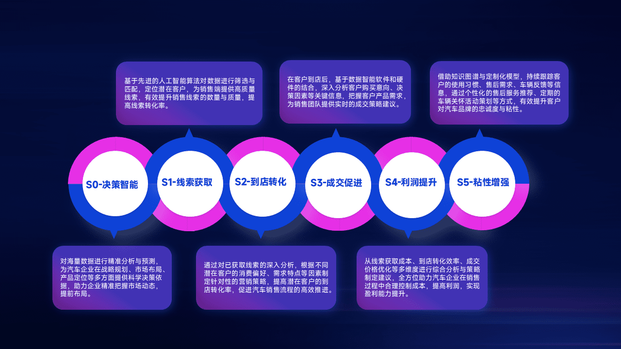 通过拓宽潜在客户来源、、、优化线索分配并提高到店转化率,,,以增强销售效率。。。同时,,,,利用线索数据不断优化分析模型,,,,有效提升转化率,,扩大营销影响力。。